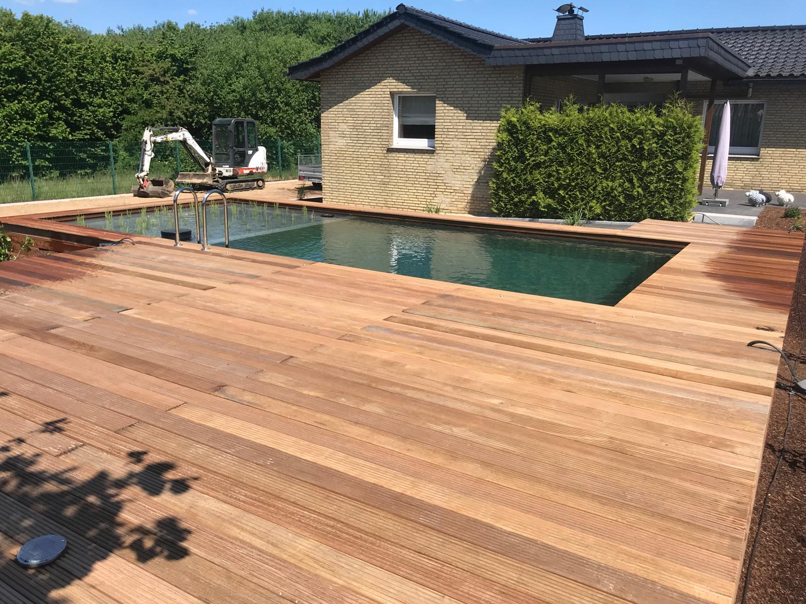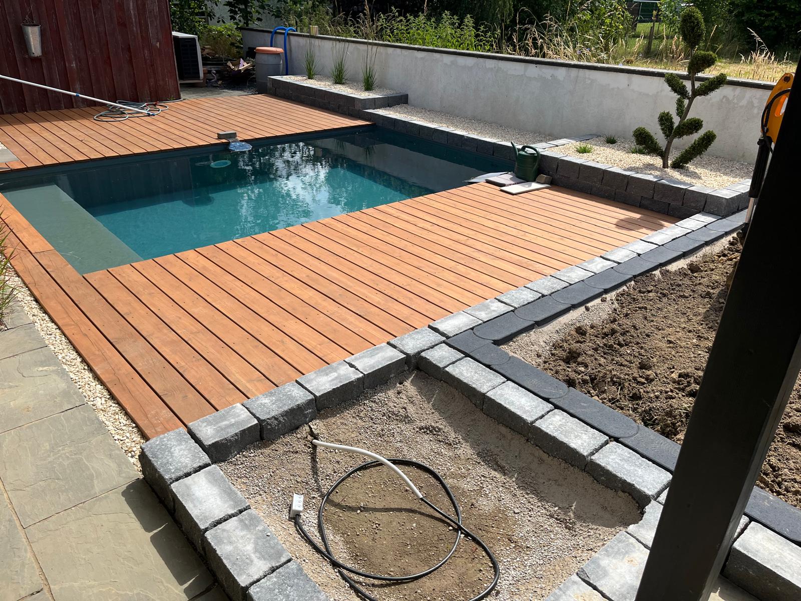 Ein Holzdeck ist eine stilvolle und funktionale Möglichkeit, Ihren Außenbereich aufzuwerten. Es passt sich harmonisch in die Umgebung ein und erzeugt eine wohnliche und natürliche Stimmung. Wir passen ihr Holzdeck exakt an ihre Fläche an, egal ob als Poolumrandung oder einfach als Terrasse.